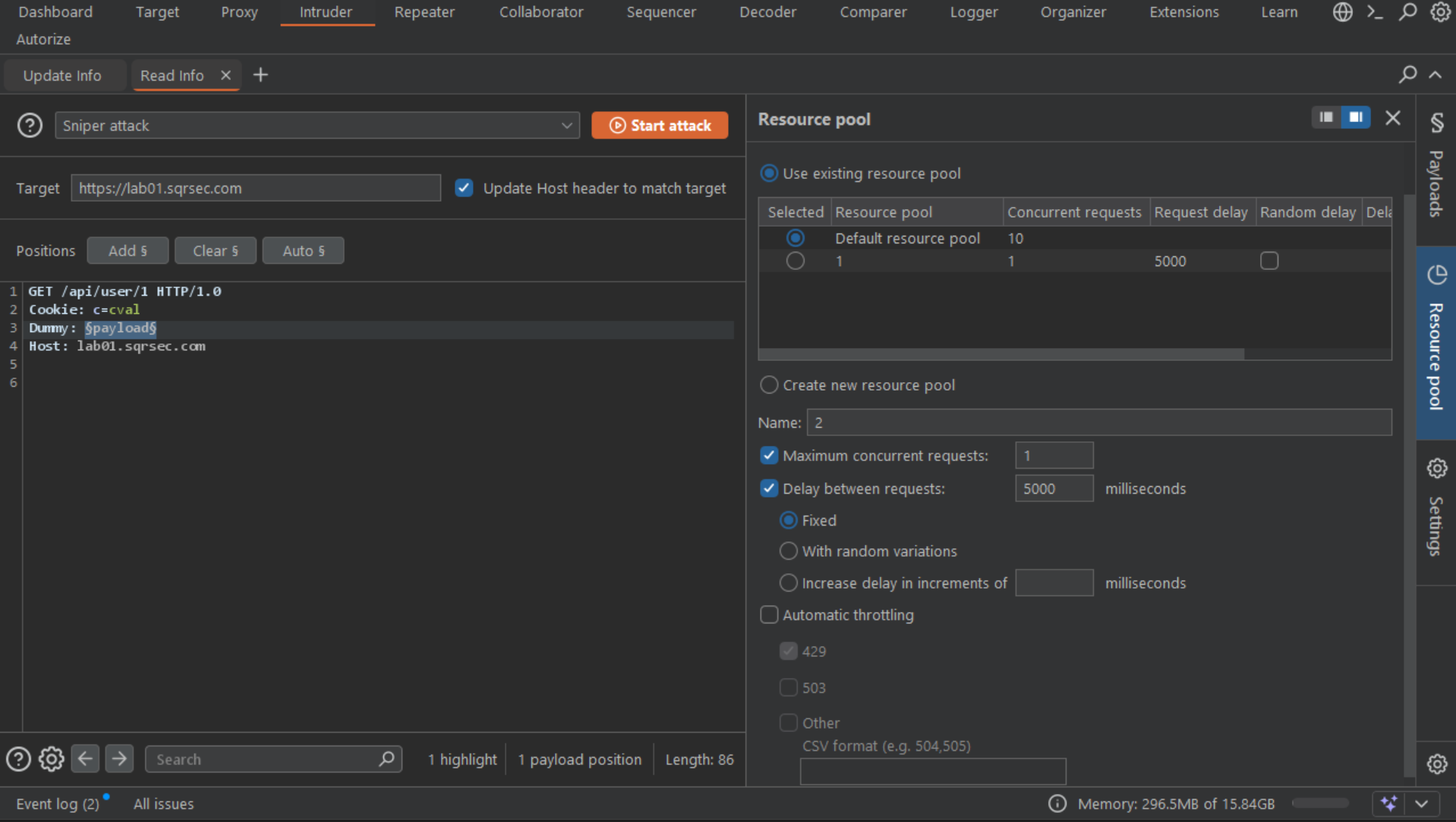 Start the GET intruder