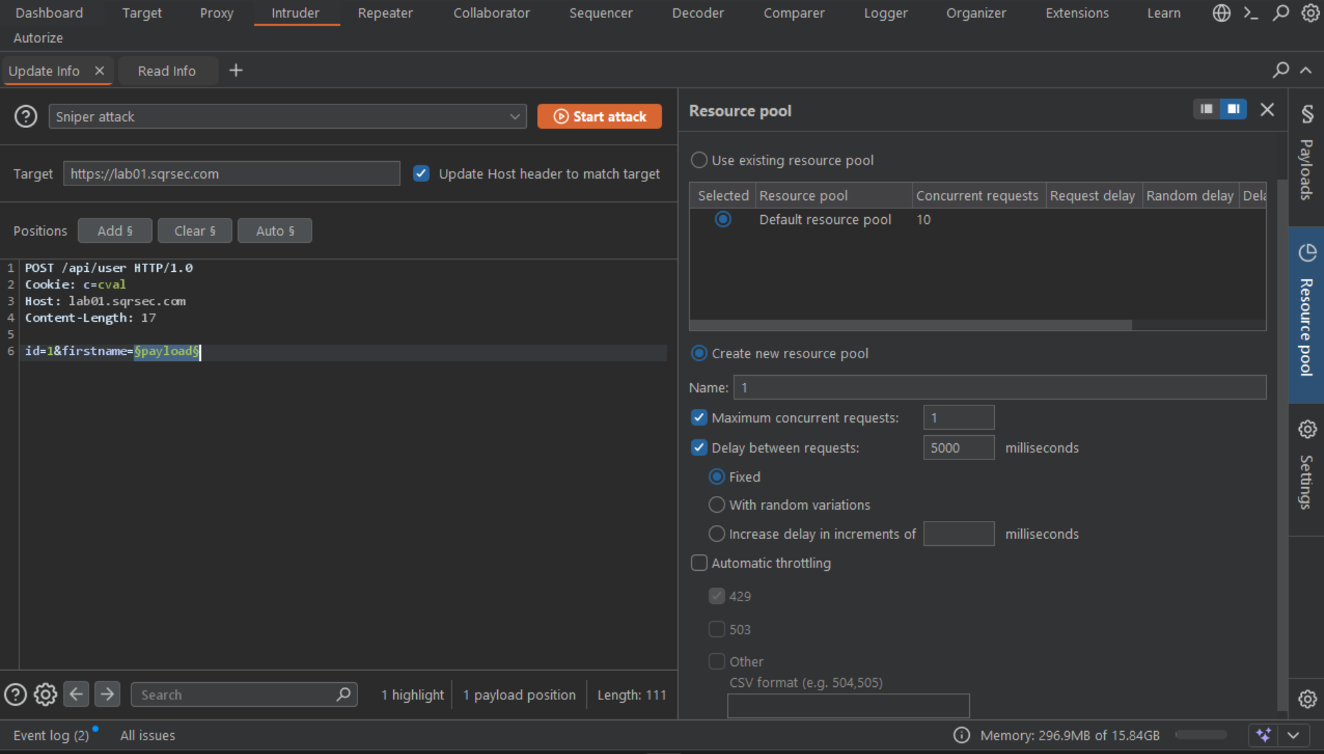 Therefore running a full intruder on the POST/PUT endpoint and then using the GET endpoint will only be relevant for the last payload sent.